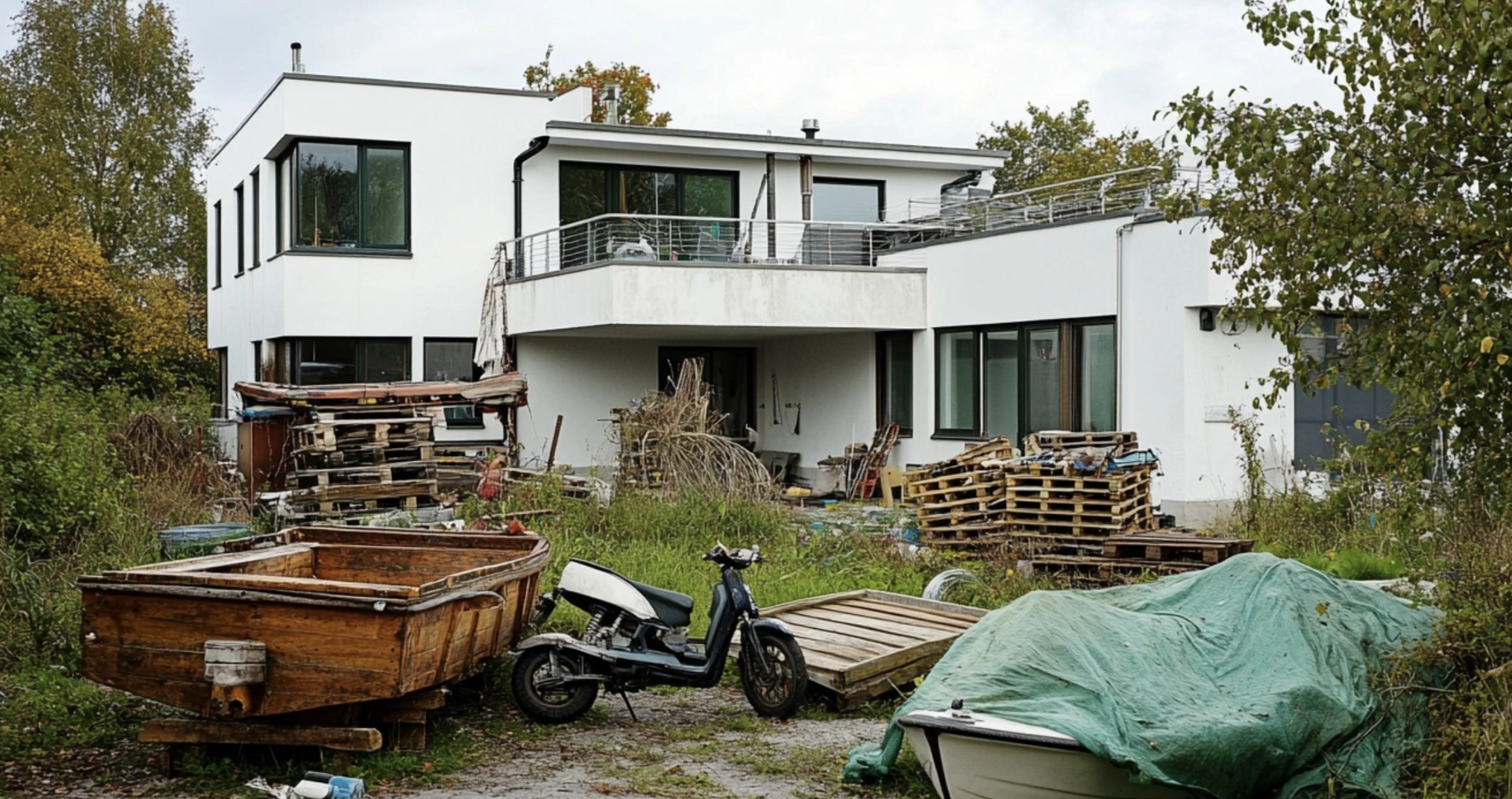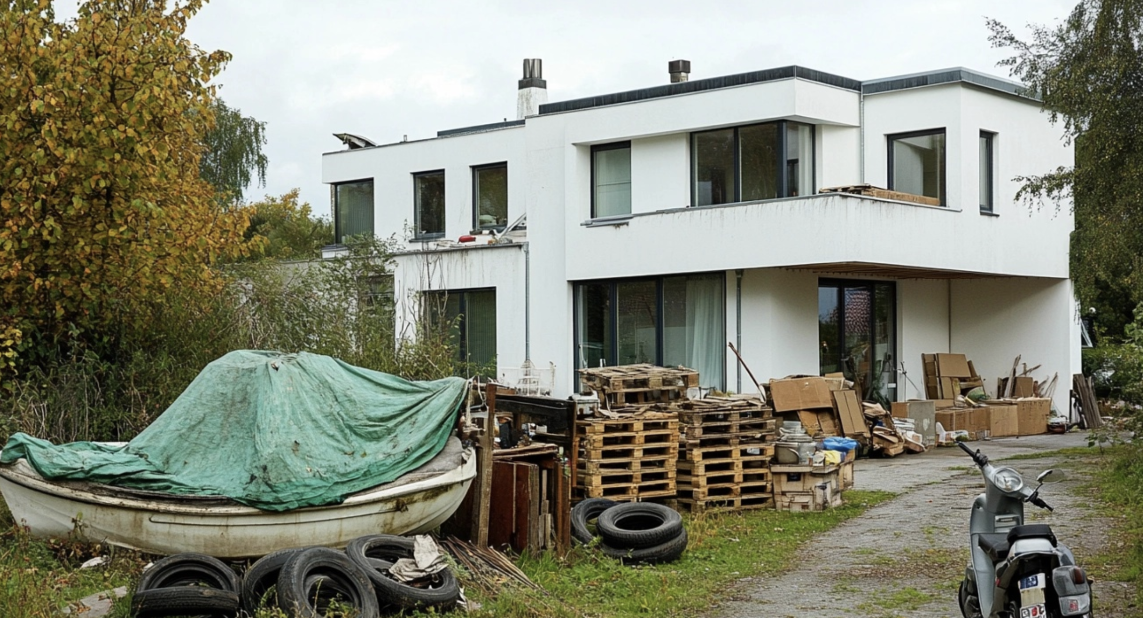 - Investering i faldefærdige rekvisitter: Flere husejere er villige til at betale dyre domme for at finde biler, scootere og både, som simpelthen er så faldefærdige som muligt. Disse genstande placeres strategisk på ejendommen for at signalere dårlig velstand.